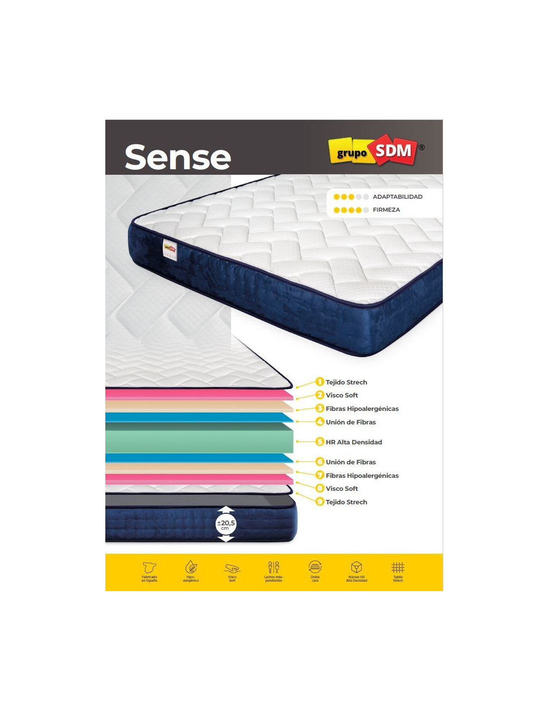 Dimensiones: 105 cms de ancho, 190 cms de largo, 21 cms de espesor