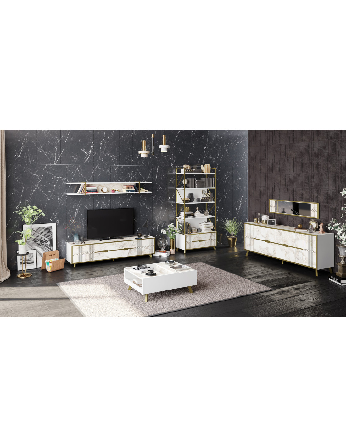 -Dispone de aparador, mueble de TV, y mesa de comedor a juego