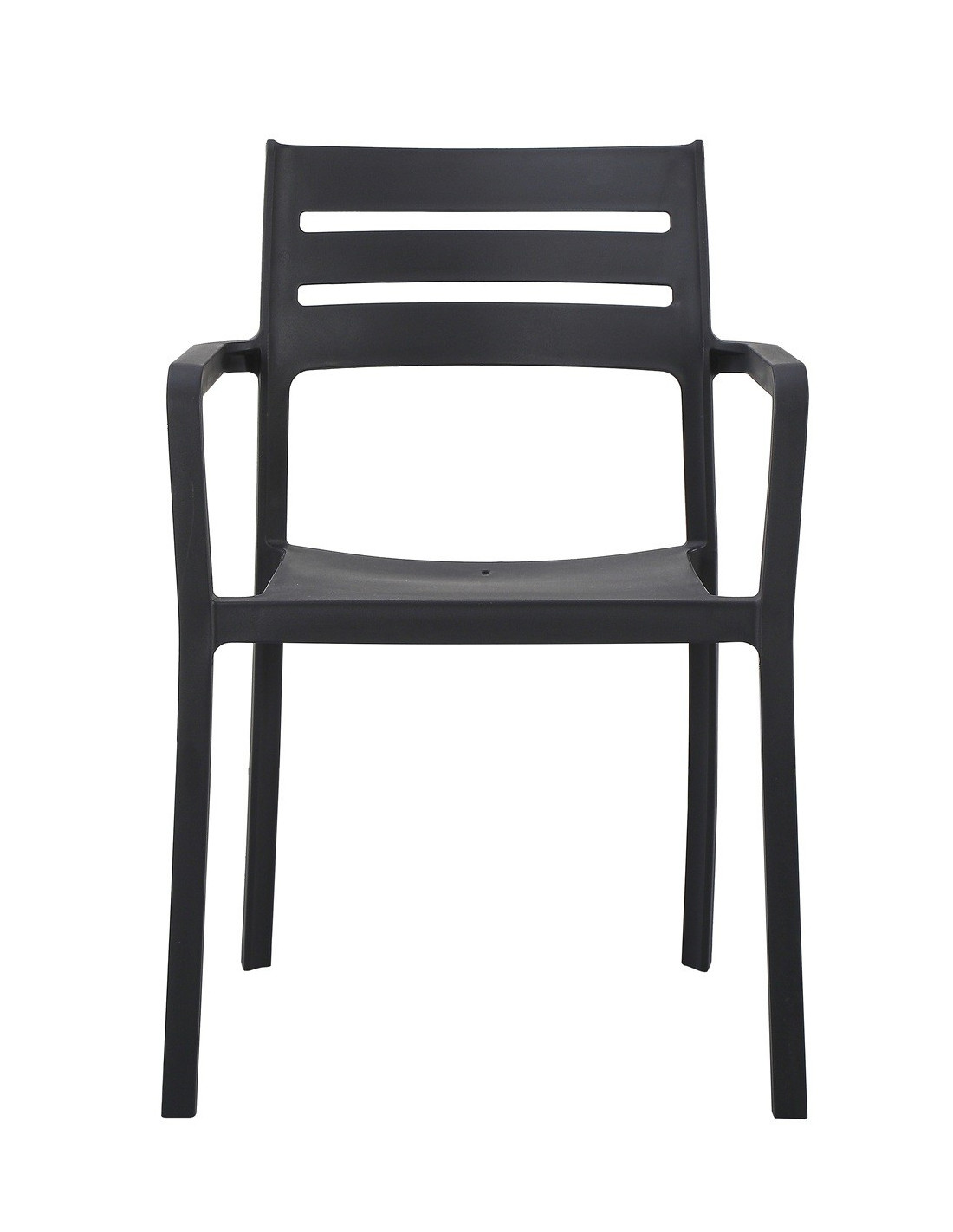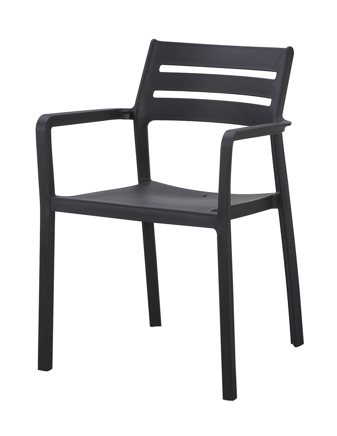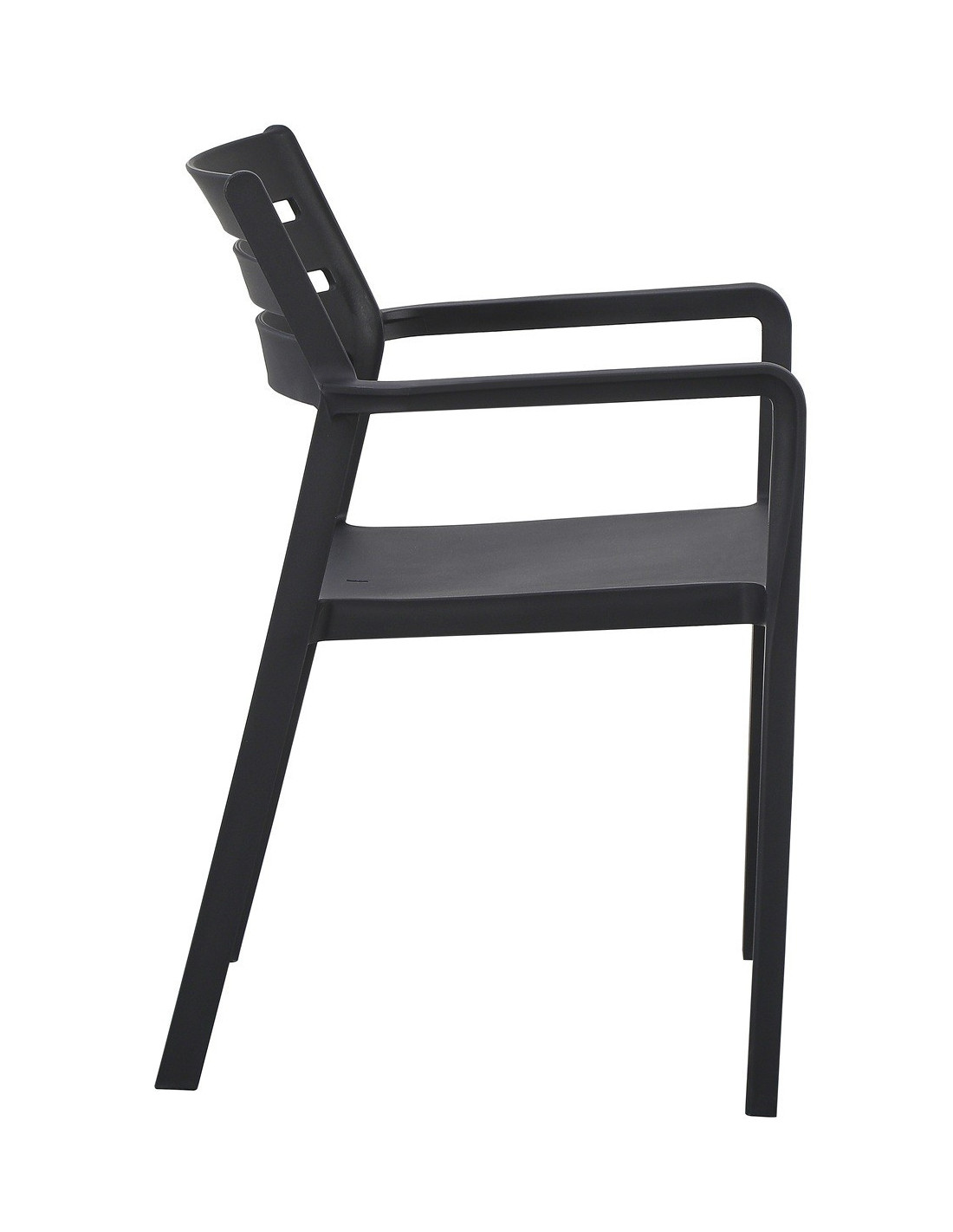 Sillón apilable, polipropileno negro. Uso en exterior e interior. Otros colores disponibles. Mesas a juego.
