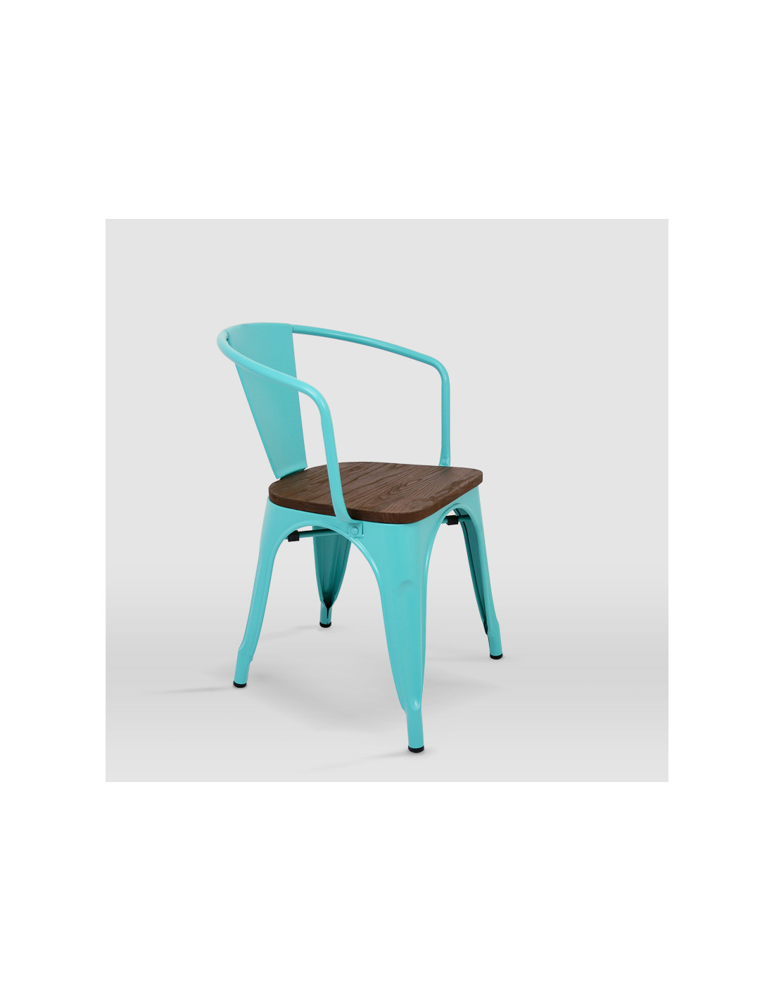 -Acabado en pintura epoxi de color verde igual foto con asiento de madera maciza de pino.