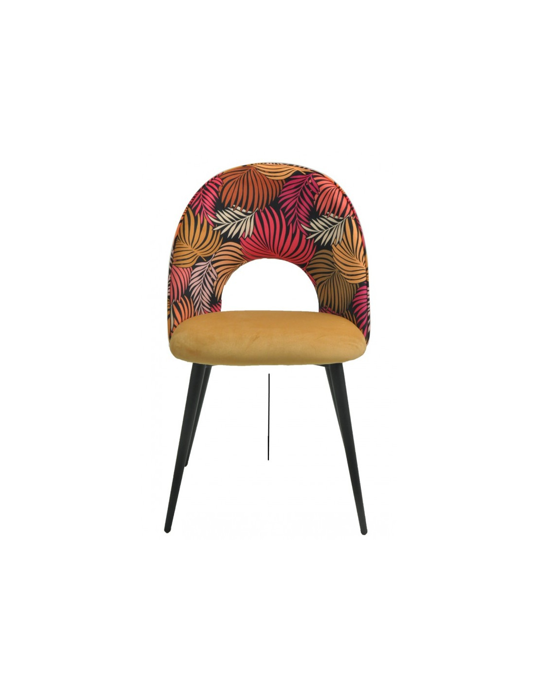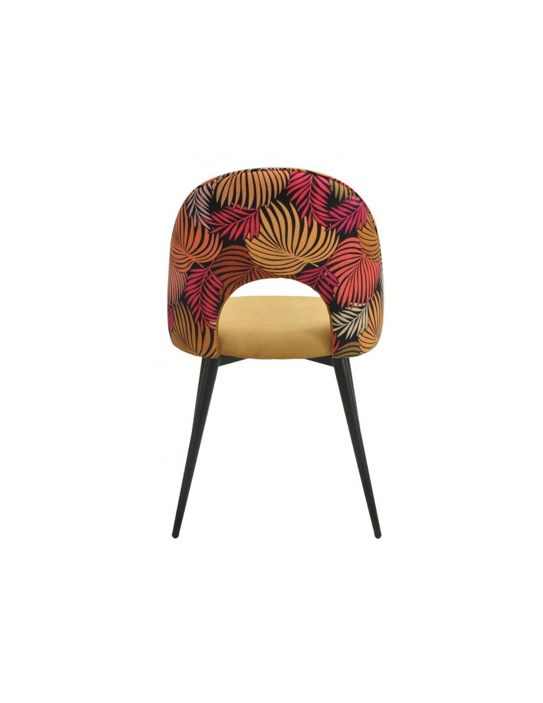 -Asiento tapizado en terciopelo de color amarillo, respaldo en tejido decorado floral a juego