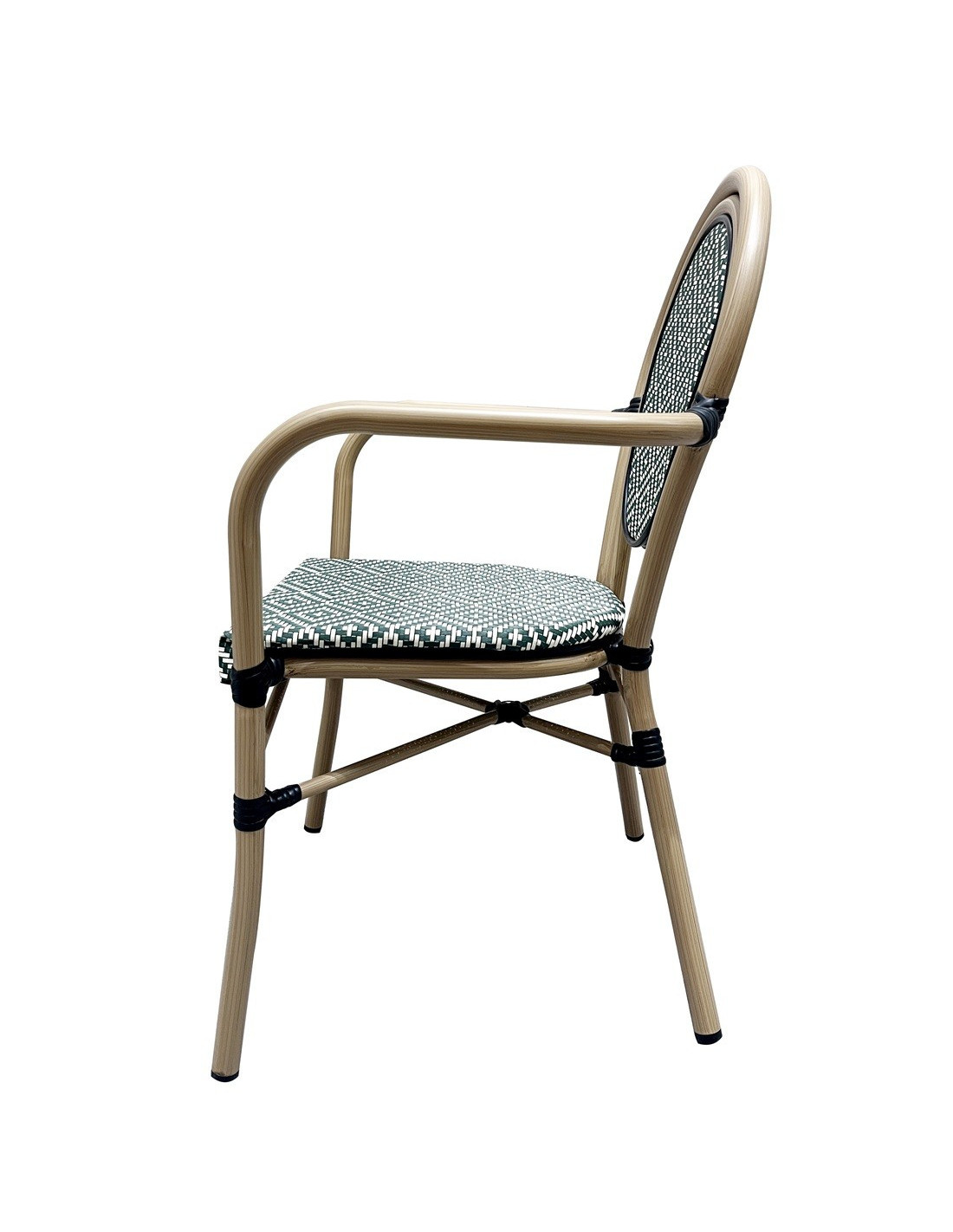 -Asiento y respaldo en mesh de color crema y verde