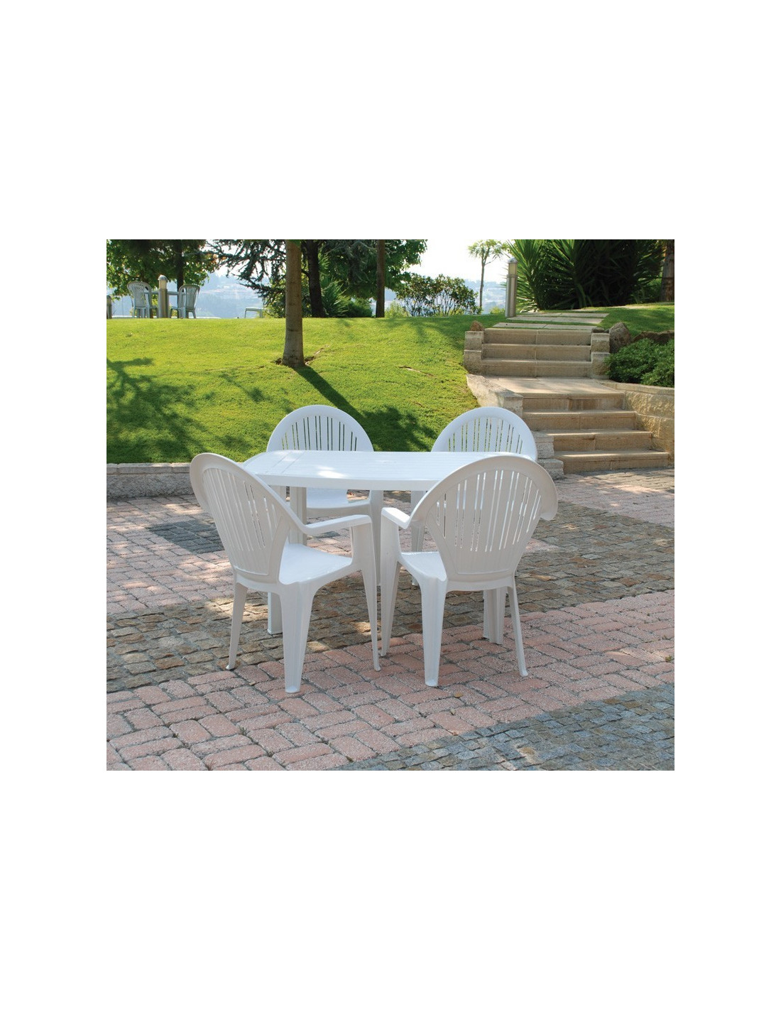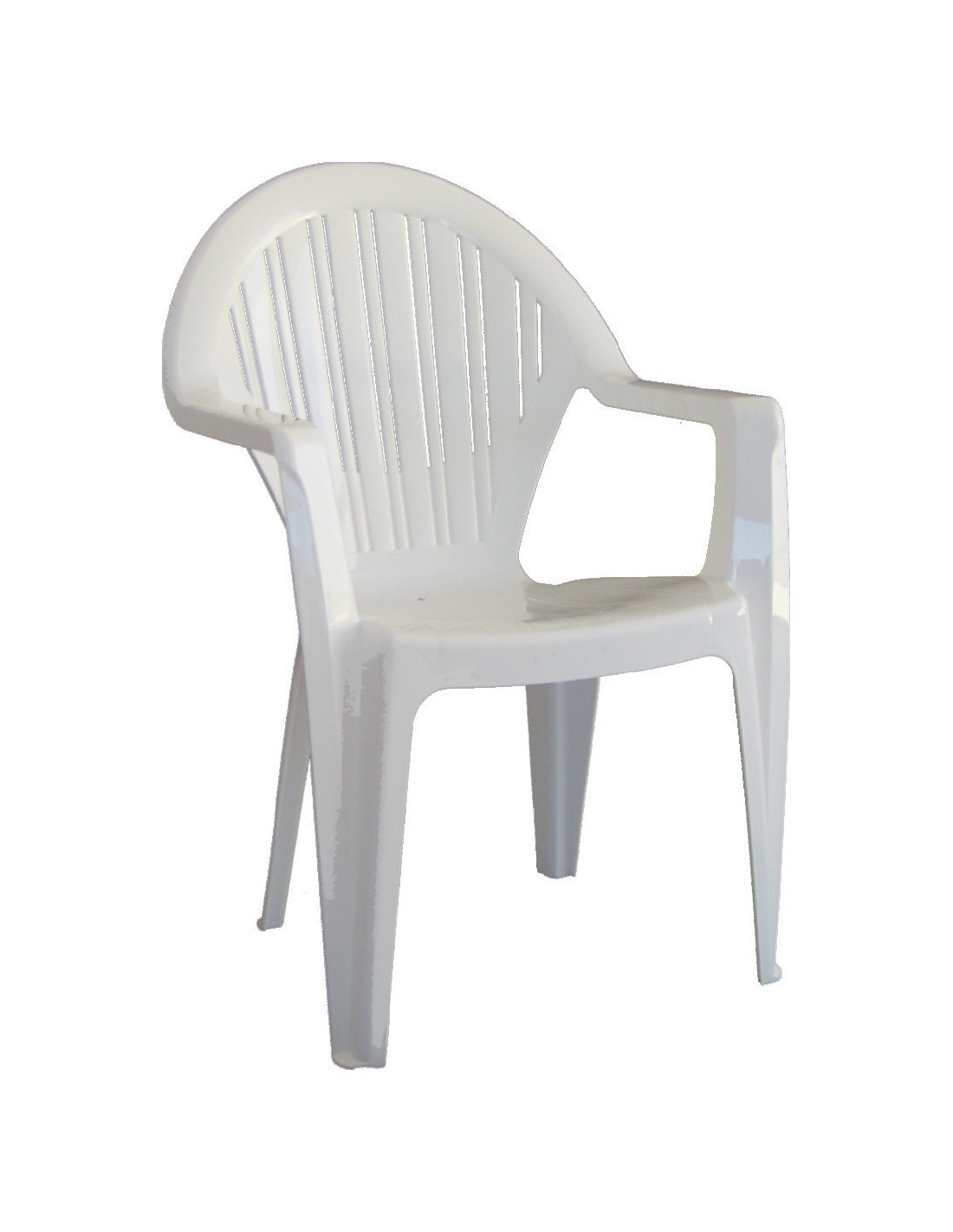 -Sillón de resina, monoblock, muy resistente, apilable, color blanco.