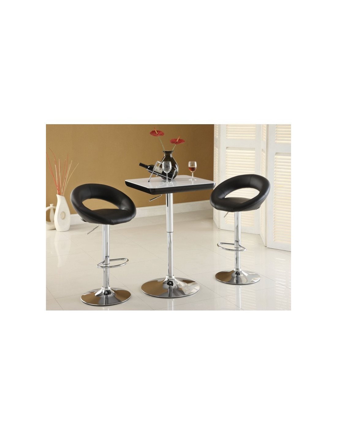 -Asiento tapizado en similpiel en color negro.