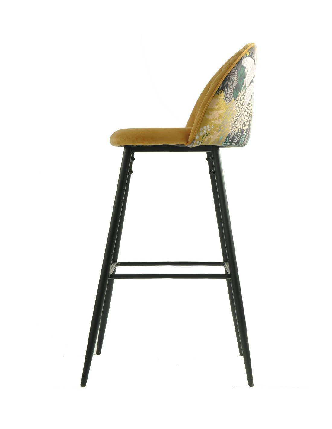 -Asiento y respaldo tapizados en terciopelo de color amarillo, trasera del respaldo en tejido decorado palm.