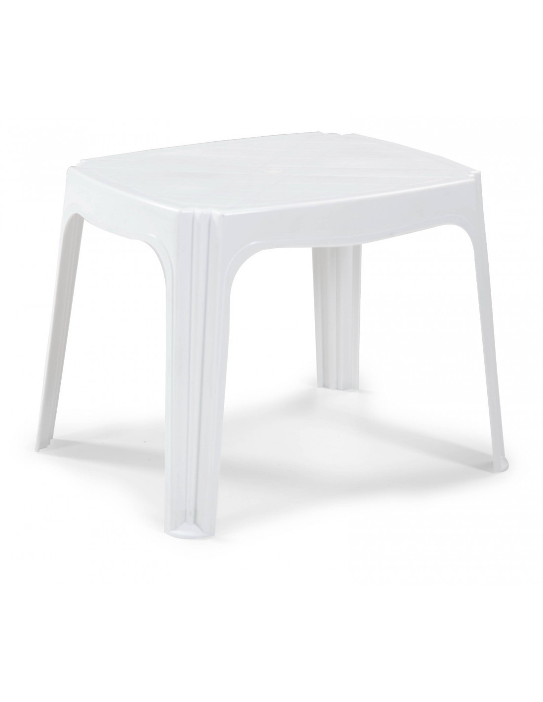 -Mesa baja de resina, apilable, color blanco.